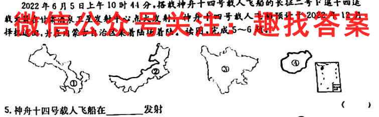 2022年6月5日上午10时44分,搭栽神舟十四号载人飞船的长征二号F遥十四运载大在甘肃酒泉卫星发射中心点火发射,种舟十四号载人飞船预计于2022年12月择机返田,并在内蒙古自治区某着陆场着陆。读图,完成56题。5.种舟十四号载人飞船在发射()