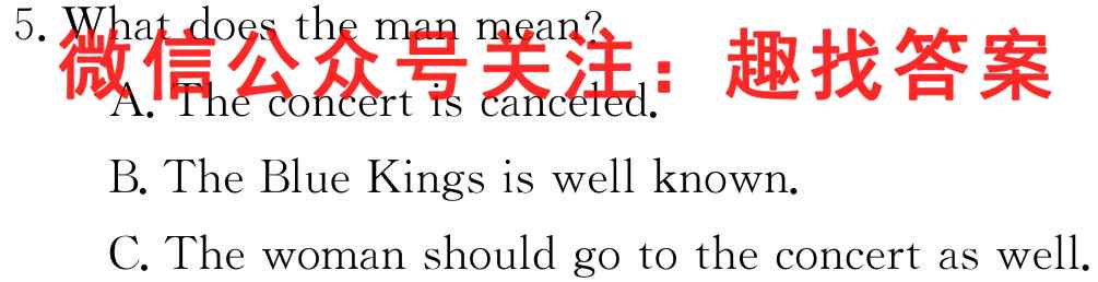 5.What does the man mean?A.The concert is canceled.B.The Blue Kings is well known.C.The woman should go to the concert as well.