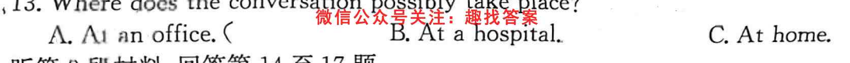 13.Where does the conversation possibly take place?A.At an office.( B.At a hospital. C.At home.