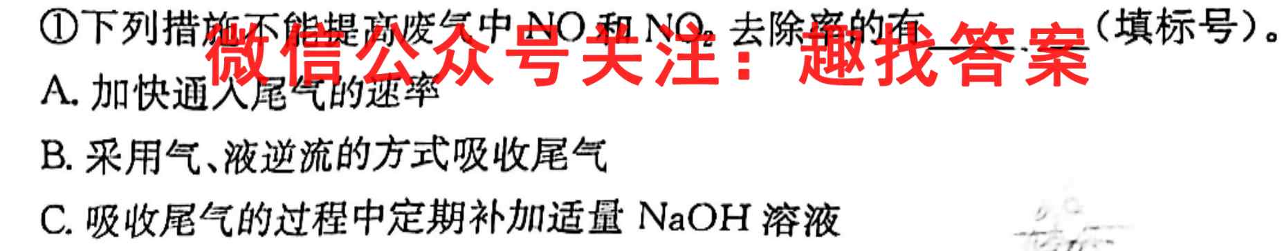 下列措施不能提高废气中A.加快通入尾气的速率B.采用气、液逆流的方式吸收尾气C.吸收尾气的过程中定期补加适量NaOH溶液①NO和NO2去除率的有(填标号)。
