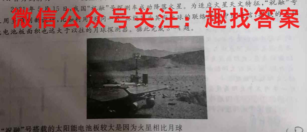 2021年5月15日,我国“祝融”号探测车成功降落火星。为适应火星天文特征,“祝融”号采用多项创新设计,比如利用“天问一号”环绕器为其与地球的联络提供中继通信,搭载的太阳能电池板面积也远大于以往的月球探测器。据此完成3~4题。