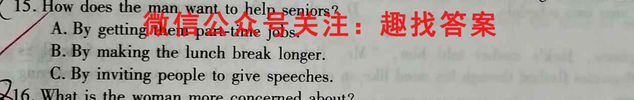 (i 5.How does the man want to help seniors?A.By getting them part-time jobs.B.By making the lunch break longer.C.By inviting people to give speeches.
