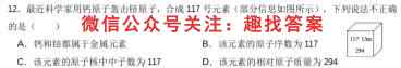 12.最近科学家用钙原子轰击培原子,合成117号元素(部分信息如图所示),下列说法不正确的是()A.钙和培都属于金属元素B.该元素的原子序数为117C.该元素的原子核中中子数为117D.该元素的相对原子质量为:294