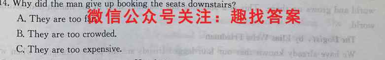 14.Why did the man give up booking the seats downstairs?id ora qu nsg ban linowA. They are too far.B.They are too crowded.C. They are too expensive.bl row