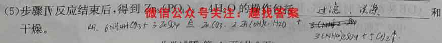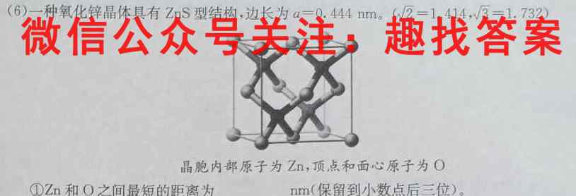 (5)步骤Ⅳ反应结束后,得到Zn3(PO4)24H2O的操作包括滤干燥。41.6NH4HCO3+3SO4ZnCO3,2Zn(OH)2H2O31NH)2SO4+5CO2(6)一种氧化锌晶体具有ZnS型结构,边长为a=0.444mm。(2=1.414,3=1.732)晶胞内部原子为Zn,,顶点和面心原子为O①Z和O之间最短的距离为nm(保留到小数点后三位)。