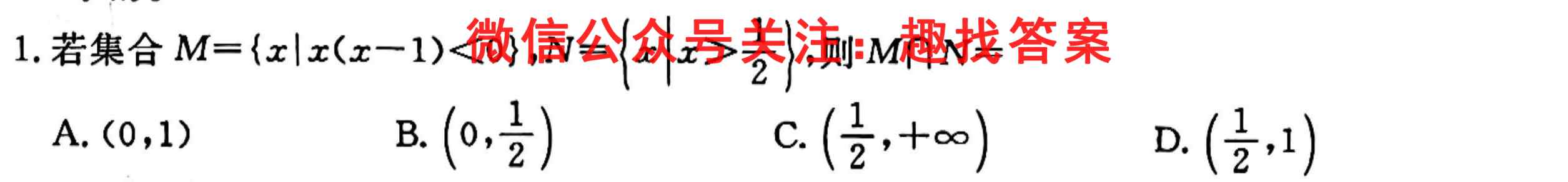 1.若集合M=\x|x(x-1)12.\,则M∩N=A.(0,1)B.(0,12)C.(12,+)D.(12,1)