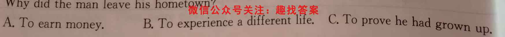 7.Why did the man leave his hometown?A.To earn money.B.To experience a different life.C.To prove he had grown up.