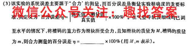 (3)该实验的系统误差主要源于“合力’的测量,而百分误差是衡量实验精确度的重要标准,其定义为“百分误差η=真实值一测量×100%”。在气垫导轨及细线均已调至水平的情况下,将槽码的重力作为滑块所受合力,且知滑块的质量为M,槽码的质量