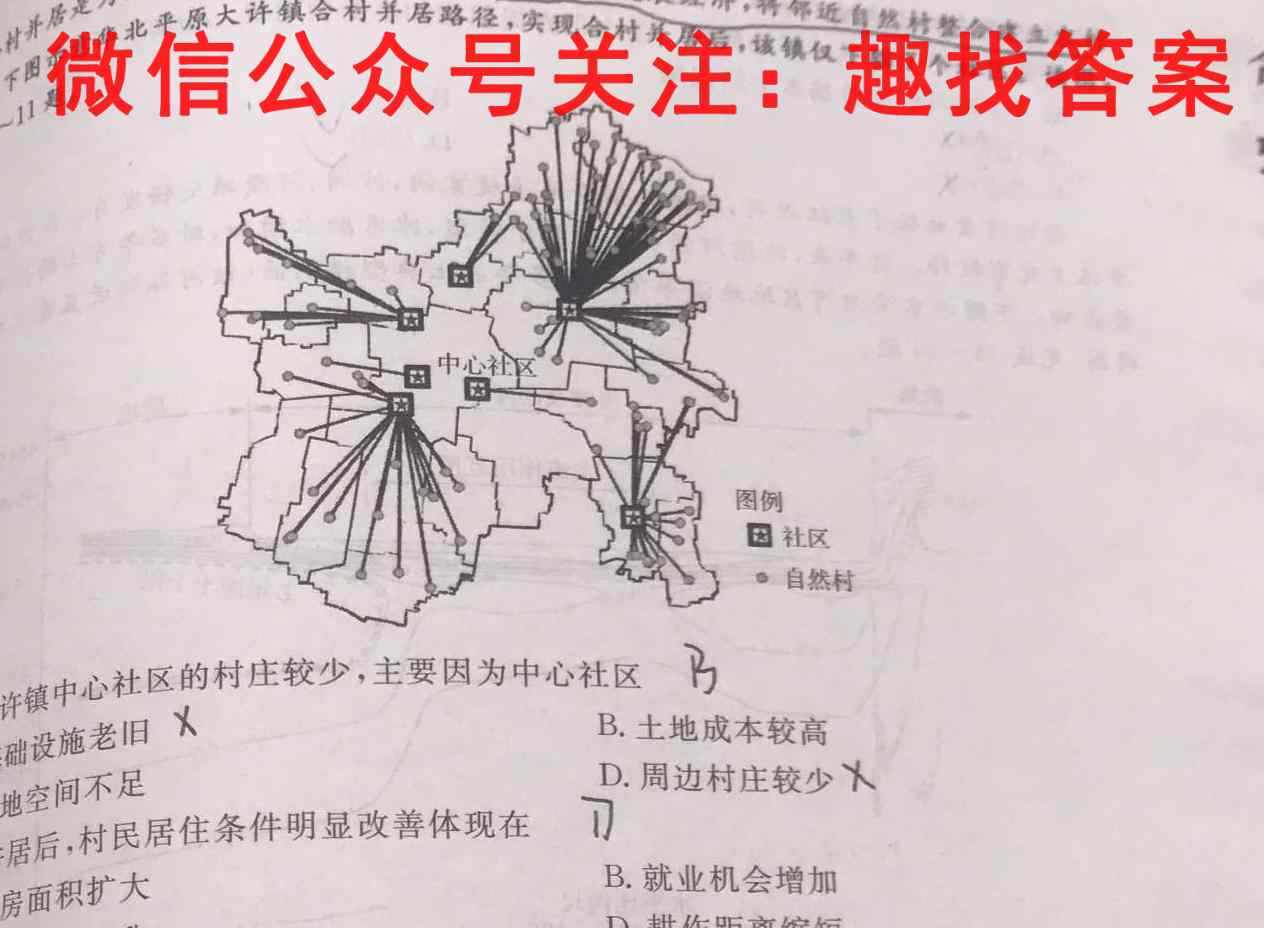 自然7社题图例因社区。自然村9.#A大许镇中心社区的村庄较少,主要因为中心社区区4.基础设施老旧B.土地成本较高C.用地空间不足D.周边村庄较少m台村并居后,村民居住条件明显改善体现在