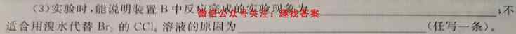(3)实验时,能说明装置B中反应完成的实验现象为;不适合用溴水代替Br2的CCl4溶液的原因为(任写一条)。