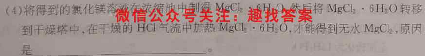 (4)将得到的氯化镁溶液在浓缩池中制得MgCl26H2O,然后将MgCl26H2O转移到干燥塔中,在干燥的HCI气流中加热MgCl26H2O,,原因才能得到无水MgCl2,NH4NO3,(1)若稀硝酸腐蚀锌板时还原产物为NHNO:,则氧化剂与还原剂的物质的量之比为.