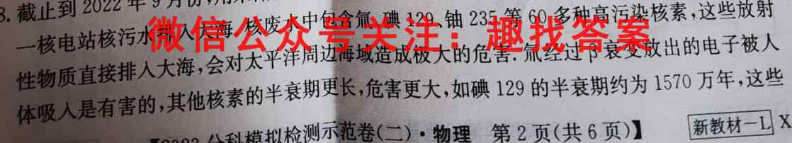 8.截止到2022年9月份,用来储存福岛核废水的储存罐将会全部用完,日本已经确定将福岛第一核电站核污水排人大海.核废水中包含氚、碘129、铀235等60多种高污染核素,这些放射性物质直接排人大海,会对太平洋周边海域造成极大的危害.氚经过β衰变放出的电子被人β体吸人是有害的,其他核素的半衰期更长,危害更大,如碘129的半衰期约为1570万年,这些