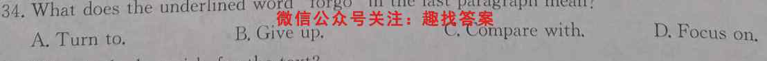 34. What does the underlined word “for go in the last paragraph mean?A. Turn t B. Give up C.Compare with. D. Focus on.