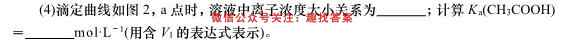 (4)滴定曲线如图2,a点时,溶液中离子浓度大小关系为;计算Ka(CH3COOH)=molL^-1(用含V1的表达式表示)。