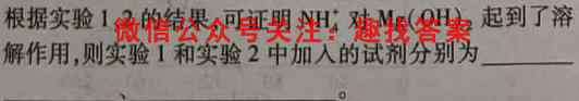 根据实验1、2的结果,可证明NH4^+对Mg(OH)2起到了溶解作用,则实验1和实验2中加入的试剂分别为。