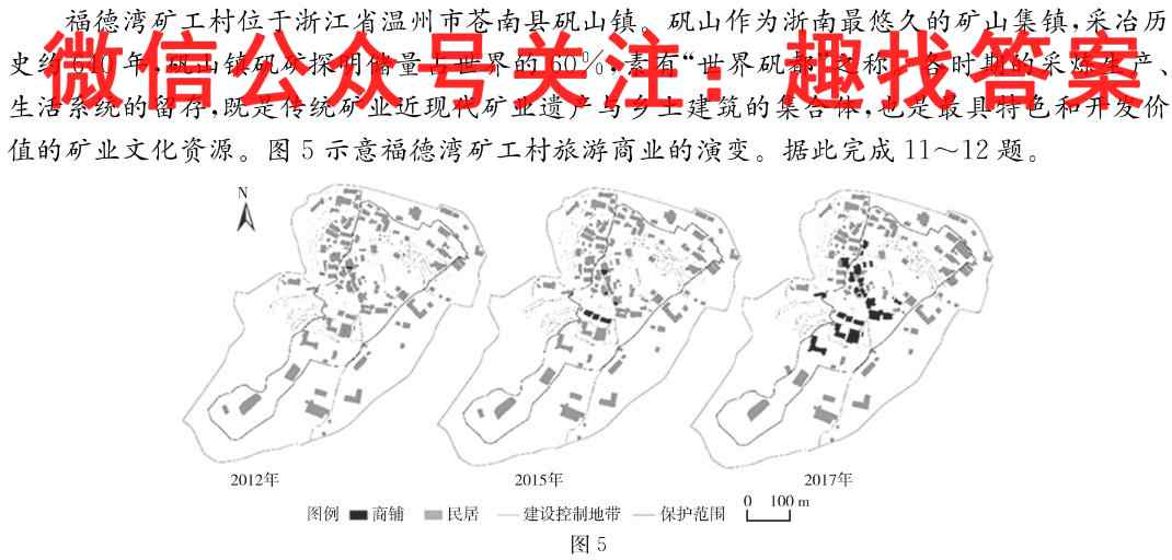 福德湾矿工村位于浙江省温州市苍南县矾山镇。矾山作为浙南最悠久的矿山集镇,采冶历史约640年,矾山镇矾矿探明储量占世界的60%,素有“世界矾都”之称。各时期的采炼生产、生活系统的留存,既是传统矿业近现代矿业遗产与乡土建筑的集合体,也是最具特色和开发价值的矿业文化资源。图5示意福德湾矿工村旅游商业的演变。据此完成11~12题。图5