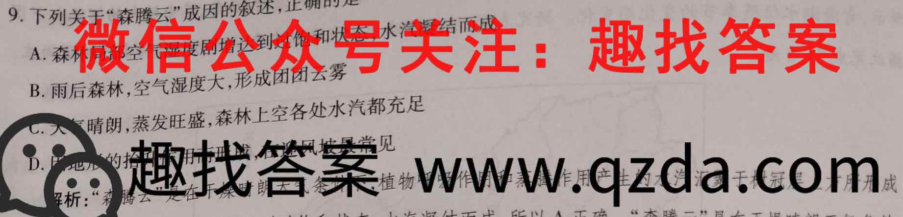 9.下列关于“森腾云”成因的叙述,正确的是A.森林局部空气湿度剧增达到过饱和状态,水汽凝结而成B.雨后森林,空气湿度大,形成团团云雾晴朗,蒸发旺盛,森林上空各处水汽都充足C.人见D.的的解析:趣找答植NMN,Czda.com成