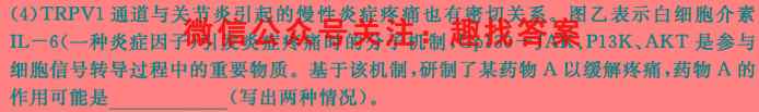 (4)TRPV1通道与关节炎引起的慢性炎症疼痛也有密切关系。图乙表示白细胞介素IL一6(一种炎症因子)引发炎症疼痛时的分子机制,Gp130-JAK、P13K、AKT是参与细胞信号转导过程中的重要物质。基于该机制,研制了某药物A以缓解疼痛,药物A的作用可能是(写出两种情况)。
