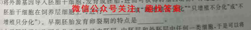 (3)将外源基因导人胚胎干细胞,发育成胚胎,进而可获得转基因动物,转化过程中选用的胚胎干细胞在饲养层细胞上可进行(填“既增殖又分化”“只增殖不分化”或“不增殖只分化”)。早期胚胎发育卵裂期的特点是