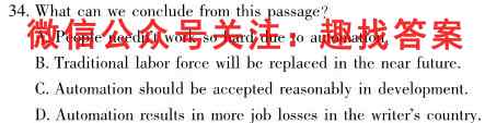 34.What can we conclude from this passage?A.People need nt work so hard due to automation.B.Traditional labor force will be replaced in the near future.C.Automation should be accepted reasonably in development.D.Automation results in more job losses in the writer’s country.