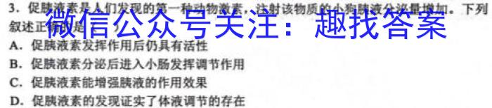 2023考前信息卷·第五辑 重点中学、教育强区 考向考情信息卷(三)3生物试卷答案试卷答案,我们目前收集并整理关于2023考前信息卷·第五辑 重点中学、教育强区 考向考情信息卷(三)3生物试卷答案得系列试题及其答案,更多试题答案请关注微信公众号:趣找答案/直接访问www.qzda.com(趣找答案)