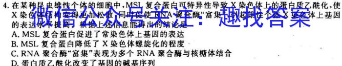 4..在某种昆虫雄性个体的细胞中,MSL复合蛋白可特异性导致X染色体上的蛋白质乙酰化,使X染色体结构变得更加松散,同时促使RNA聚合酶“富集”,引起雄性个体X染色体上基因的表达水平提高。根据上述信息能得出的结论是A.MSL复合蛋白促进了常染色体上基因的表达B.MSL复合蛋白降低了X染色体螺旋化的程度C.RNA聚合酶“富集”表现为多个RNA聚合酶与核糖体结合D.蛋白质乙酰化改变了基因的碱基序列