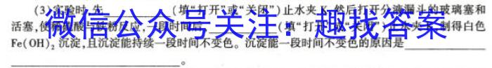 (3)实验时,先(填“打开”或“关闭”)止水夹,然后打开分液漏斗的玻璃塞和活塞,使稀硫酸与铁粉反应,一段时间后,(填“打开”或“关闭”)止水夹,制得白色Fe(OH)2,沉淀,且沉淀能持续一段时间不变色。沉淀能一段时间不变色的原因是。