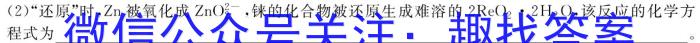 (2)“还原”时,Zn被氧化成ZnO2^2-,,铼的化合物被还原生成难溶的2ReO22H2O,,该反应的化学方程式为。