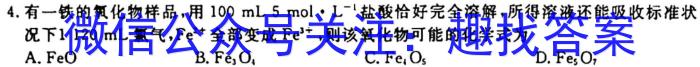 4.有一铁的氧化物样品,用100mL5molL^-‘盐酸恰好完全溶解,所得溶液还能吸收标准状况下1120mL氯气,Fe^2+全部变成Fe^3+,则该氧化物可能的化学式为A.FeOB.Fe3O4C.Fe4O5D.Fe5O7