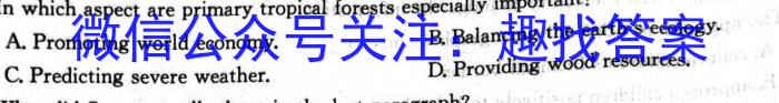 33.In which aspect are primary tropical forests especially important?A.Promoting world economy.____ B.Balancing the earth’s ecology.C.Predicting severe weather. D.Providing wood resources.