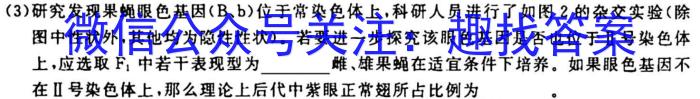 (3)研究发现果蝇眼色基因(B、b)位于常染色体上,科研人员进行了如图2的杂交实验(除图中性状外,其他均为隐性性状)。若要进一步探究该眼色基因是否也位于Ⅱ号染色体上,应选取F1中若干表现型为雌、雄果蝇在适宜条件下培养。如果眼色基因不在Ⅱ号染色体上,那么理论上后代中紫眼正常翅所占比例为。(1)F1植株为倍体,自然状态下(填“可育”或“不可育”),说明油菜与萝卜存在,需用处理F1植株使染色体数加倍,形成异源多倍体。