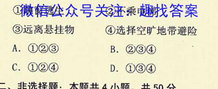 20.图乙中下划线处空缺的信息可能是①跳窗逃生②)不乘电梯③远离悬挂物④选择空旷地带避险A.①②③B.②③④C.①②④D.①③④材料二:水幕集热地暖加温系统工作原理示意图。(1)说明日光温室能够保温的原理。(6分)