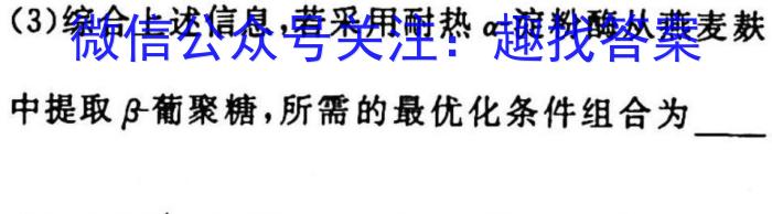 (3)综合上述信息,若采用耐热^-淀粉酶从燕麦麸中提取β葡聚糖,所需的最优化条件组合为(4)研究人员欲在上述实验基础上,设计实验探究耐热^-淀粉酶的最适pH,请写出实验思路及最适pH确定方法。实验思路:。最适pH确定方法:。