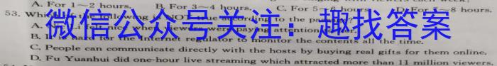 A. For 1-2 hours.B.For 3-4 hours.C. For 5-6 hours.D.For 7-8 hours.53. which of the following is NOT true according to the passage?A. Nic Li fe lt nice when viewers were paying attention to her.B.It is hard for the Internet regulator to monitor the contents all the time.C. People can corr uni cate directly with the hosts by buying real gifts for them online.D. Fu Yu ar hui did one hour live streaming which attracted more than 11 million viewers.
