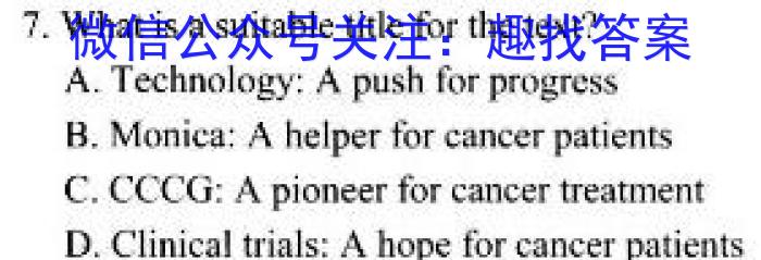 7.What is a suitable title for the text?A.Technology:A push for progressB.Monica: A helper for cancer patientsC.CCCG: A pioneer for cancer treatmentD.Clinical trials:A hope for cancer patients
