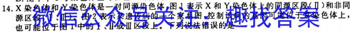 14.X染色体和Y染色体是一对同源染色体,图1表示X和Y染色体上的同源区段(Ⅱ)和非同源区段(I、Ⅲ)。图2表示某遗传病的一个家系图,控制该病的基因可能位于常染色体上:也可能位于图1中的I、Ⅱ或Ⅲ区段上。下列说法错误的是A.该遗传病一定不是常染色体显性遗传病B.若控制该病的基因位于常染色体上,则Ⅲ:为致病基因携带者的可能性为1/3C.图2中,第I代和第Ⅱ代中的女性一定都是杂合子D.若控制该病的基因位于图1的I区段,则Ⅲ,为致病基因携带者的可能性为1/2