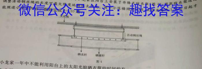 昆明(25°N,103E)某小区二楼的小龙家在阳台上安装了升降式晾衣架(图4),该款晾衣架通过升降式晾衣款调整活动钢丝绳的长度可最大限度地接收太阳光。由于小区楼间距过近,太阳光每年1月6日起才近,太阳能照进小龙家阳台。据此完成9~110题。