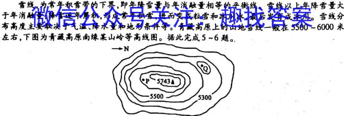 雪线,为常年积雪带的下界,即年降雪量与年消融量相等的平衡线。雪线以上年降雪量大于年消融量,降雪逐年累积,形成常年积雪,进而变成粒雪和冰川冰,最后发育成冰川。雪线分布高度主要取决于气温、降水量和地形条件等。青藏高原上的山地雪线一般在5500~6000米左右,下图为青藏高原南缘某山岭等高线图。据此完成5~6题。山地生态系统复杂,具有特定的结构和功能,拥有丰富的生态多样性资源,常成为研究生物带、气候带及生物分布的绝佳区域。天山呈东西走向,北坡山地高差悬殊,气候的垂直地带差异显著,具有完整的山地垂直带谱,下表中数据示意天山北坡不同垂直自然带及土壤的部分理化性质。据此完成7~8题。7..天山北坡海拔较低处形成山地荒漠带,关键是因为