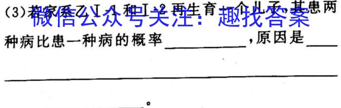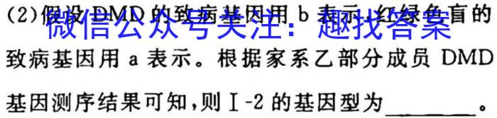 (2)假设DMD的致病基因用b表示,红绿色盲的致病基因用a表示。根据家系乙部分成员DMD基因测序结果可知,则I-2的基因型为。(3)若家系乙I-1和I-2再生育一个儿子,其惠两种病比患一种病的概率,原因是