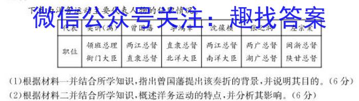 下表为洋务运动主要代表人物的任职情况。(1)根据材料一并结合所学知识,指出曾国藩提出该奏折的背景,并说明其目的。(6分)(2)根据材料二并结合所学知识,概述洋务运动的特点,并分析其影响。(6分)