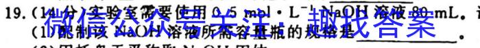 19.(14分)实验室需要使用0.5molL^-1NaOH溶液80mL。请回答下列问题:(1)配制该NaOH溶液所需容量瓶的规格是.