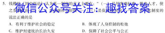 5.钱穆的《国史新论》认为某一制度的意义主要有:“(一)是用客观标准,挑选人才,使之参预政治…(二)是消融社会阶级…(三)是促进政治统一……”关于此制度的说法正确的是A.有利于维护社会的稳定B.体现了人身控制的松弛C.维护封建统治长治久安D.保障了社会公平与公正
