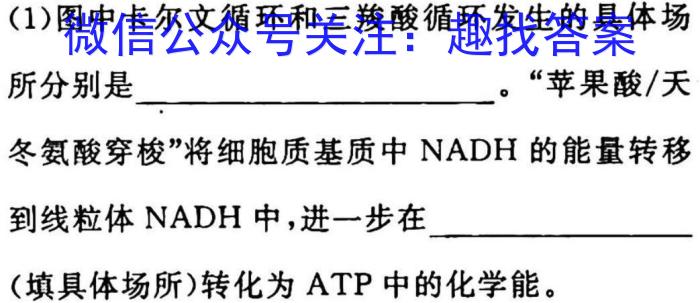 (1)图中卡尔文循环和三羧酸循环发生的具体场所分别是。“苹果酸/天冬氨酸穿梭”将细胞质基质中NADH的能量转移到线粒体NADH中,进一步在(填具体场所)转化为ATP中的化学能。