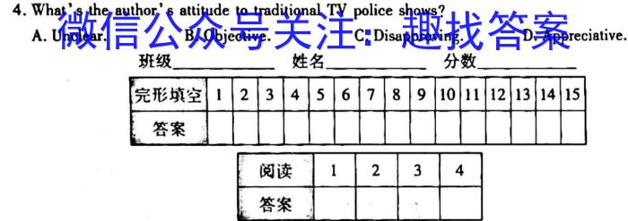 天一大联考2023年高考冲刺押题卷(六)6英语试题试卷答案,我们目前收集并整理关于天一大联考2023年高考冲刺押题卷(六)6英语试题得系列试题及其答案,更多试题答案请关注微信公众号:趣找答案/直接访问www.qzda.com(趣找答案)