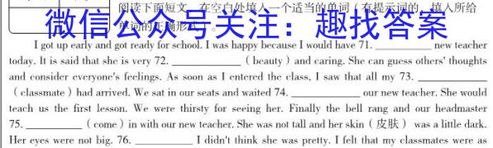 I got up early and got ready for school. I was happy because I would have 71. new teacher________today. It is said that she is very 72. (beauty) and caring. She can guess others’ thoughtsand consider everyone’s fe clings.As soon as I entered the class, I saw that all my 73. ____(classmate) had arrived. We sat in our seats and waited 74. our new teacher. She would____teach us the first lesson. We were thirsty for seeing her. Finally the bell rang and our headmaster____75. (come) in with our new teacher. She was not tall and her skin(皮肤) was a little dark.____Her e yes were not big.76. I didn’t think she was pretty.I felt that my classmates were asdisappointed as I was. The headmaster introduced 77. ( she) to us. Then she________78. (begin) to teach without saying other words. As soon as she started her lesson, wesuddenly felt something different. Her pronunciation was nice and smooth. Her teaching methods werevery interesting. We felt that the whole lesson was over 79. (quick) .And we wanted to________have the 80. (two) lesson. When I looked at the teacher’s face again, I suddenly thoughthshe was the most beautiful teacher in the world.
