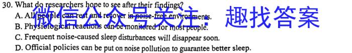 30.What do researchers hope to see after their findings?A.All people can rest and recover in noise-free environments.B.Physiological reactions can be monitored for most people.C.Frequent noise-caused sleep disturbances will disappear soon.D.Official policies can be put on noise pollution to guarantee better sleep.