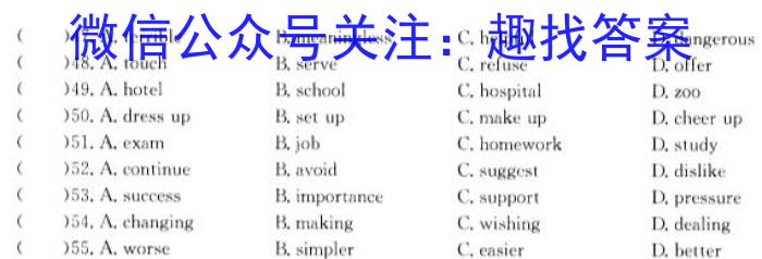 ( ) 47.A.terrible B.meaningless C.help fu D.dangerous( ) 48.A.touch B.serve C.refuse D.offer( ) 49.A.hotel B.school C.hospital D.zoo( ) 50.A.dressup B.set up C.make up D.cheer up( ) 51.A.exam B.job C.homework D.study( ) 52.A.continue B.avoid C.suggest D.dislike( ) 53.A.success B.importance C.support D.pressure( ) 54.A.changing B.making C.wishing D.dealing( ) 55.A.worse B.simpler C.easier D.betterthe danger of sandstorms and ask them not to do so.________66. 67. 68. 69.____ ____70.____