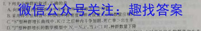1.下列关于种的,正确的是A.向耐国家自然保护区中生存的所有受称为一个种群B.采用样方法调查不同植物种密度时样方设置大小和数量应相同C-S测种增长曲线中,K/2之后种内争加,亡出生率D.型种群增长的数学模型中N=当x<11时,种群数量下降