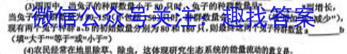 当兔子的种群数量为80-150(不包括15(3)图丙中,当兔子的种群数量小于80只时,子的种群数量型”型增长,.50)只时,种群数量会买有两个兔子种群a,b的初始数量分为80和1种R,则最择这再个子特业a(填”大于等于”或小于m)处理农杆菌,使其成为够受态细胞,农杆菌特化法的原理是:(2)②杆菌的T质粒上存在片段,它具有可以整合到受体细胞上的特点,使目的基因进入植物细胞并稳定存在和表达,为了简检成功导入重组质粒的衣杆菌,1号培养基要加入是国中过程,,属于植物组织培养技术,该技术依据的基本原理(理论基础)