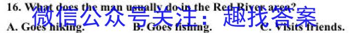 16.What does the man usually do in the Re d River area?A.Goes hiking. B.Goes fishing. C.Visits friends.